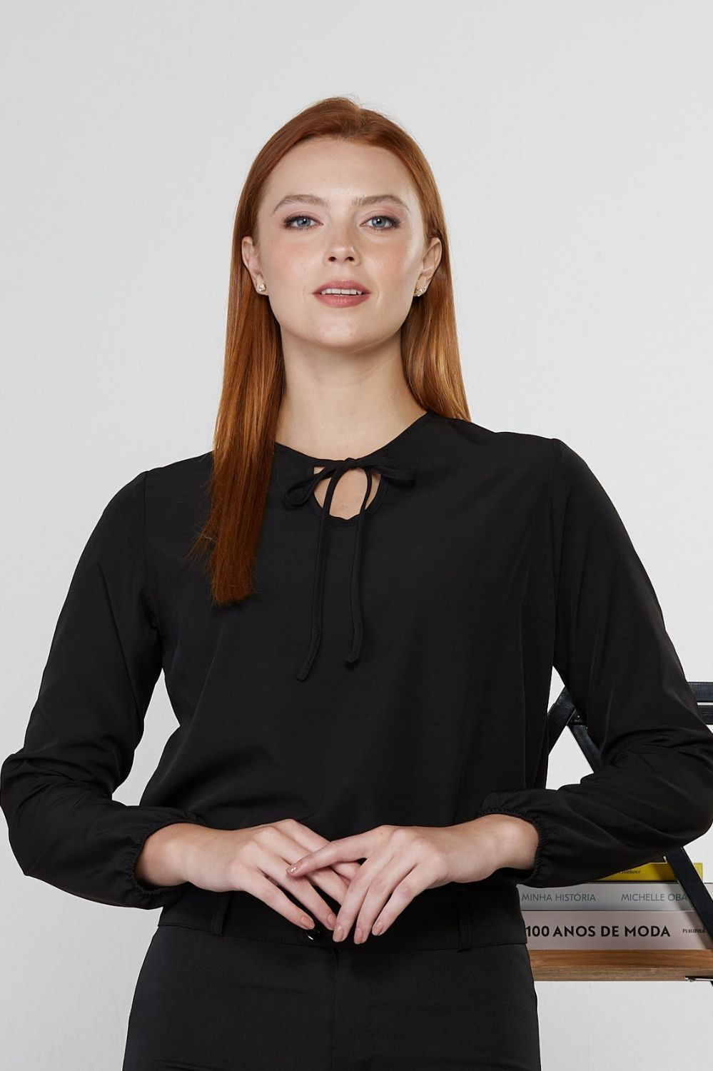 CAMISA FEM TRIC/STRECH ML CORES-PRETO