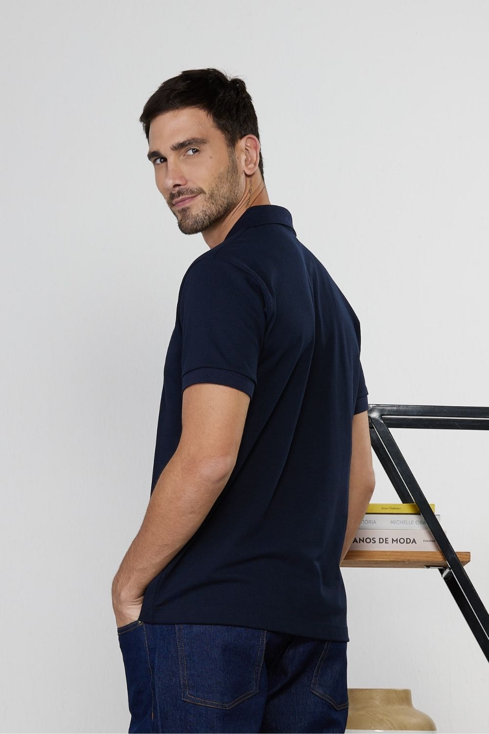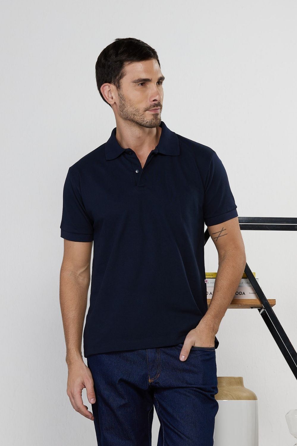 Camisa polo masculina piquet com patê de dois botões e manga curta com ribana.